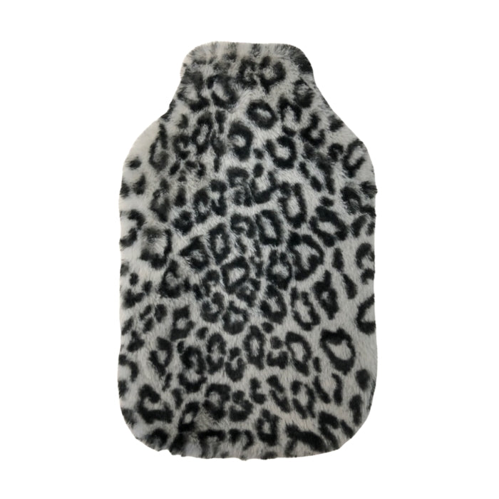 Grey Snow Leopard Print, Faux Bunny Fur, 1.7L Hot Water Bottle